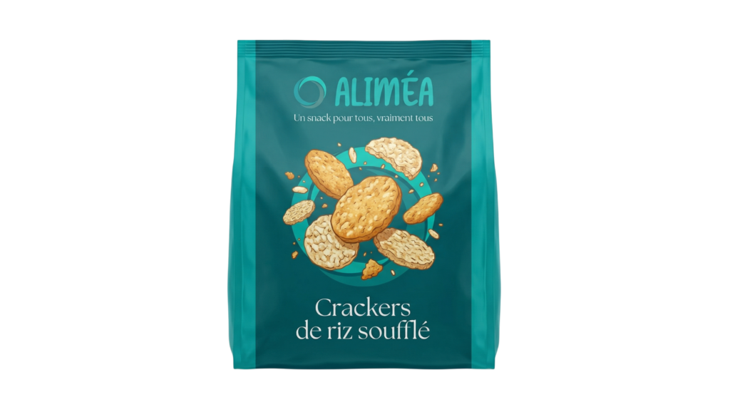 Enfin, le packaging a été pensé comme un véritable outil de réassurance. Les informations essentielles sont visibles et compréhensibles en un coup d’œil, permettant une identification rapide du produit et de ses bénéfices. À travers ces caractéristiques, notre snack ne se limite pas à un simple produit alimentaire : il devient une solution pratique, fiable et inclusive, conçue pour faciliter le quotidien des personnes allergiques.